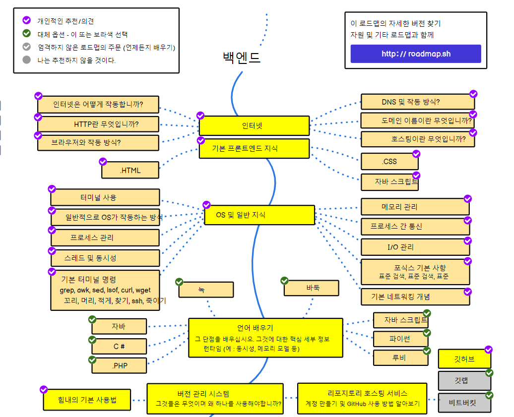 현재 내가 어떤 것을 아는지 모르는지 판들을 위해 로드맵 사이트에서 2022년도 백엔드 개발자를 참조하였다.