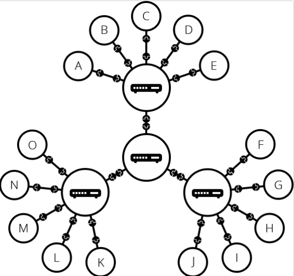 이라우터를 시스템에 추가하면 10대의 컴퓨터 네트워크에는 10개의 케이블만 필요합니다. 각 컴퓨터마다 단일 플러그와 10개의 플러그가 있는 하나의 라우터가 필요합니다.