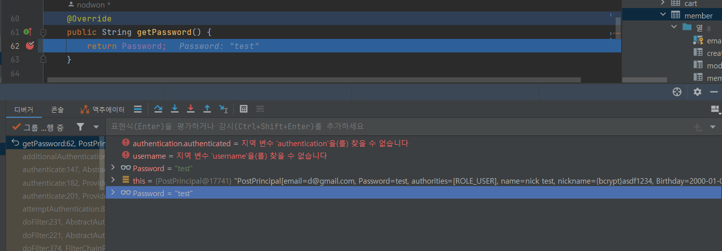 아직도 패스워드를 찾지 못하는중이다. 들어온값과 db에서 가져온값을 제대로 가져오는지 확인